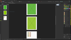 I made some goblin faces in Affinity Designer—silly little things, really, but I liked them. I exported the goblin faces, threw them in Token Stamp, and made an appropriately sized token. I then placed these images on the 1” grid sheet in Affinity Publisher, copied them multiple times, and printed them. If I hadn’t made an image yet, I just placed a circle with a text block in a square to represent the monster or NPC.